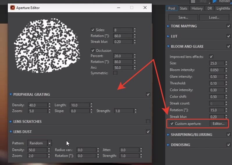 формы, цвета и интенсивности бликов. Реализовано это добавлением новой строчки «Custom aperture» (